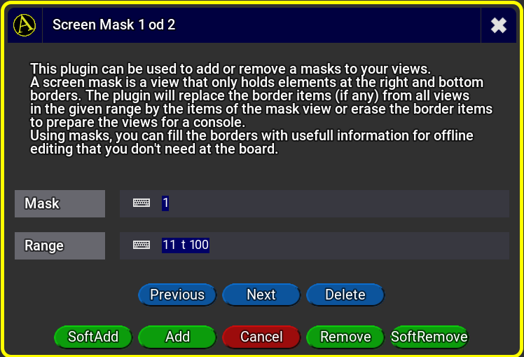 For showtime, when you just need the main screens on the console, you can use the plugin to remove the masks from your views to have them fit to the console screen. After the show, you can place them back in with just a few clicks.